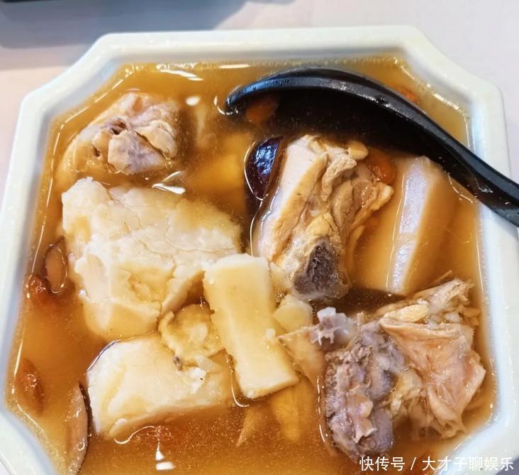 刘亦菲还晒出了她吃的美食,这是一碗山药炖鸡肉汤,看起来很滋补,也很美味。