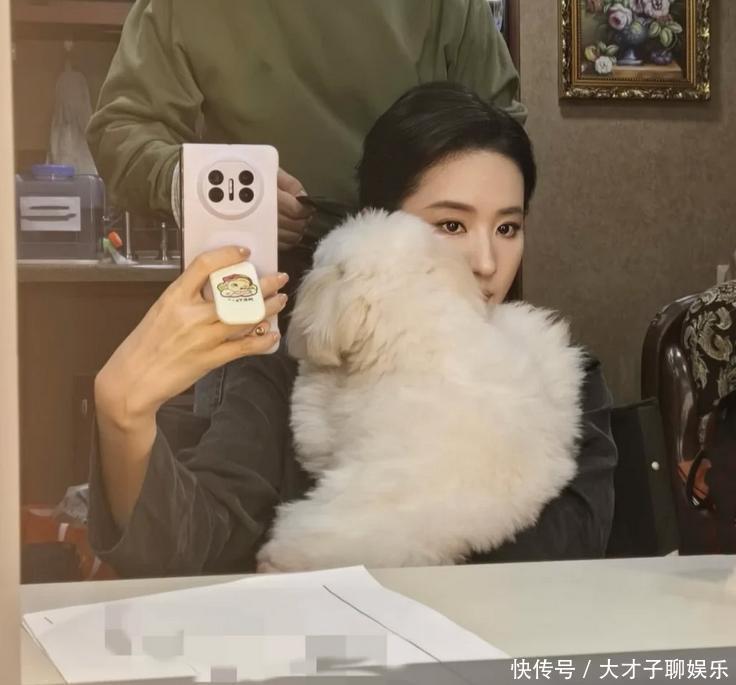 刘亦菲还晒出了她在工作时的自拍照。照片中的她坐在化妆镜前,工作人员在她身后帮她打理头发。刘亦菲一手抱着爱犬,一手拿着手机对着镜子里的自己拍照。看到刘亦菲的这张自拍照,很多粉丝都纷纷留言表示她的这个妆照似乎没有出现过。也有人注意到她桌上的文件,很多人开始猜测这是不是刘亦菲即将进组拍戏的剧本?不过,很快就被网友给否定了。因为现在是正卡在快过年的时间,如果说要进组拍戏,这个时间有点赶,所以很多人猜测她应该是拍广告的台词。